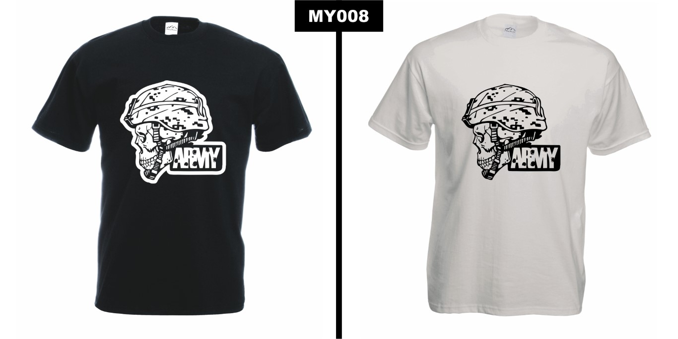 Koszulka „Czaszka Armii” z dynamicznym nadrukiem czaszki w hełmie wojskowym to doskonały wybór dla osób ceniących militarne inspiracje w modzie. Agresywny, pełen charakteru design idealnie podkreśla niezależność i odwagę noszącego.