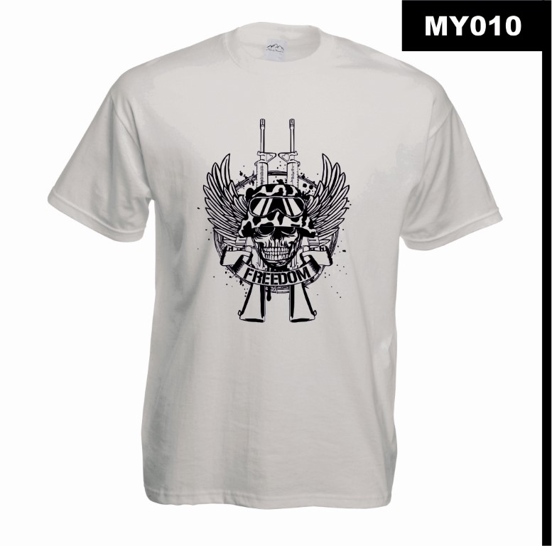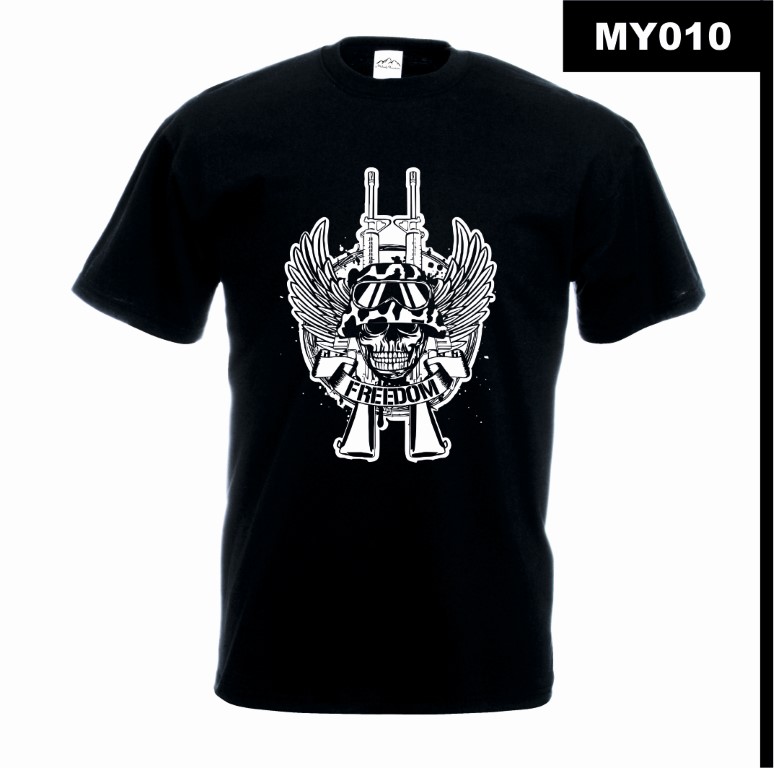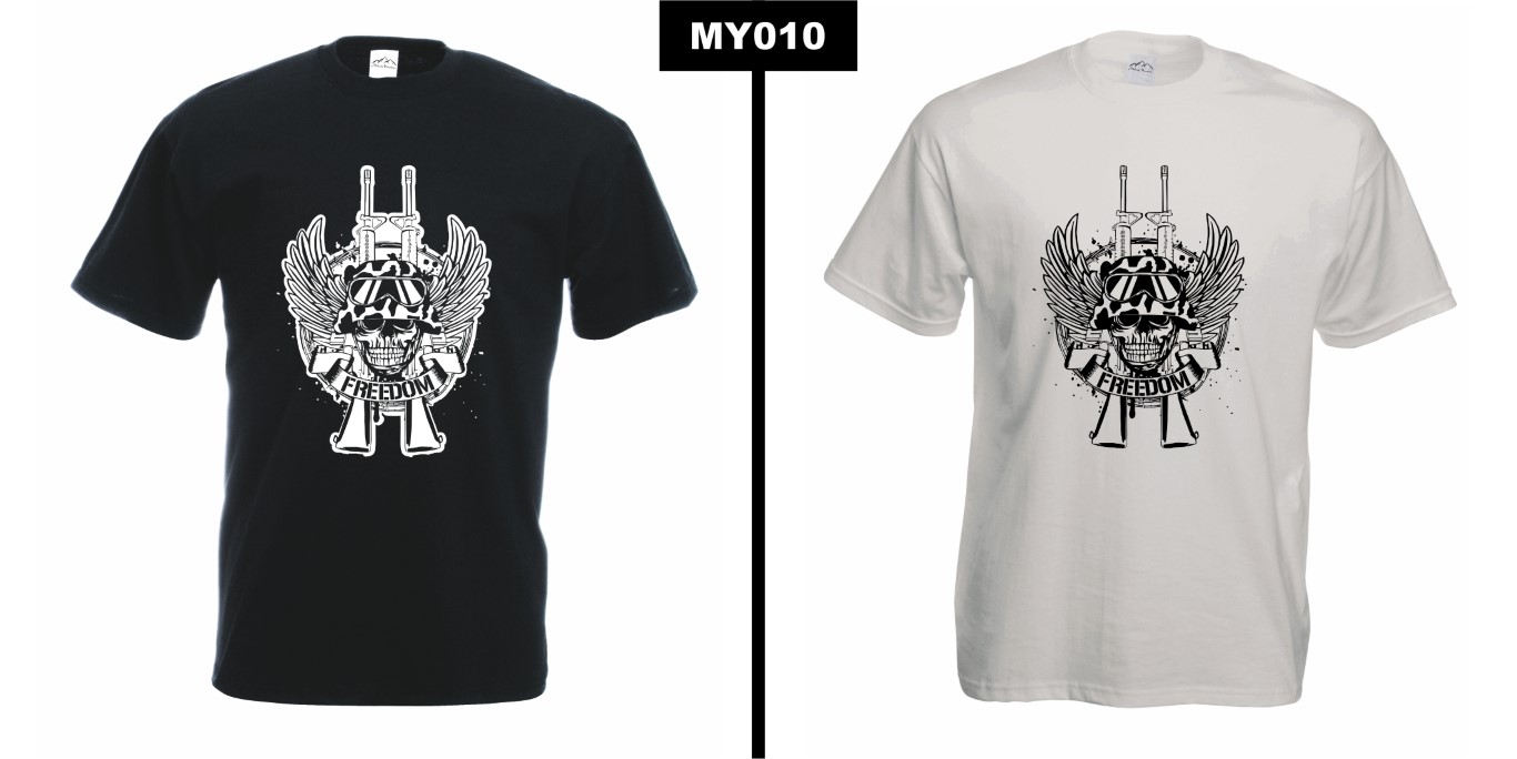 T-shirt „Czaszka Wolności” to doskonały wybór dla miłośników odważnych, militarno-artystycznych motywów. Świetnie sprawdzi się jako element codziennego ubioru, wyrażając silną osobowość i umiłowanie wolności. To również idealny prezent dla fanów wojskowych motywów i męskiego stylu.