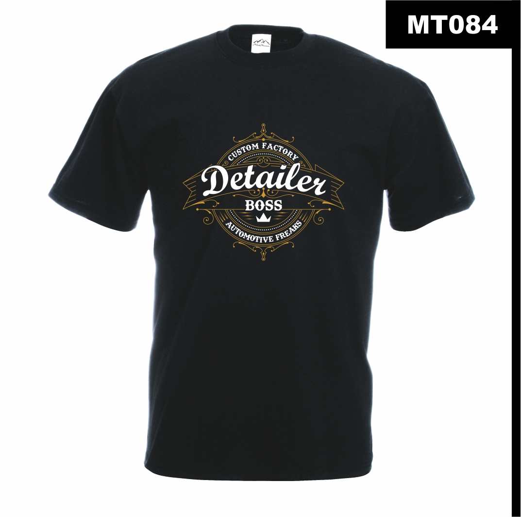 Stylowy, klasyczny nadruk inspirowany vintage'owymi emblematami warsztatów detailingowych sprawia, że koszulka wyróżnia się elegancją. Połączenie czerni i złotych akcentów nadaje jej prestiżowy charakter, który podkreśla profesjonalizm noszącej ją osoby.