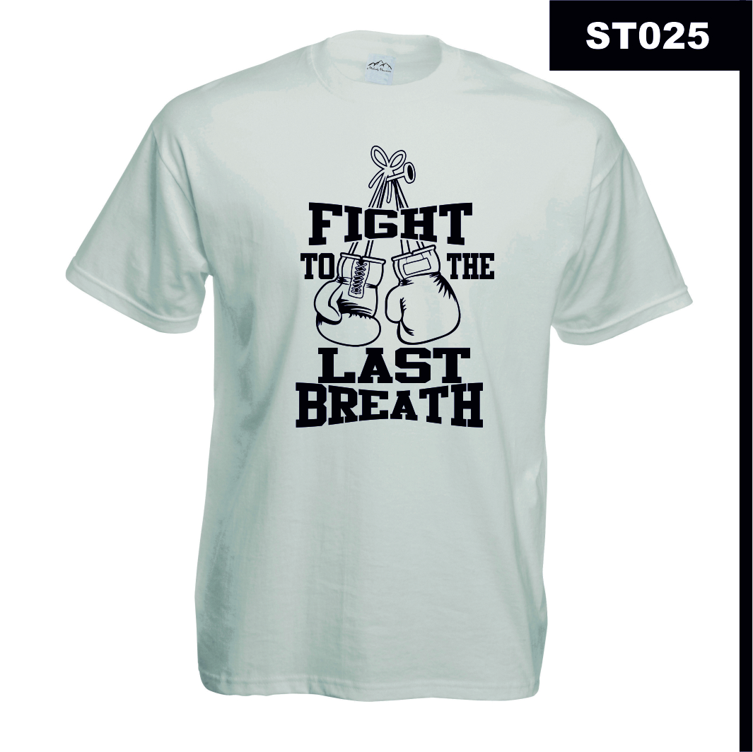 Stylizowane bokserskie rękawice nawiązują do klasycznych symboli sportów walki, a mocne, wyraziste litery hasła dodają całości dynamicznego i motywującego charakteru. Kontrastowy nadruk na białej tkaninie przyciąga uwagę i sprawia, że koszulka jest nie tylko stylowa, ale i pełna siły przekazu.