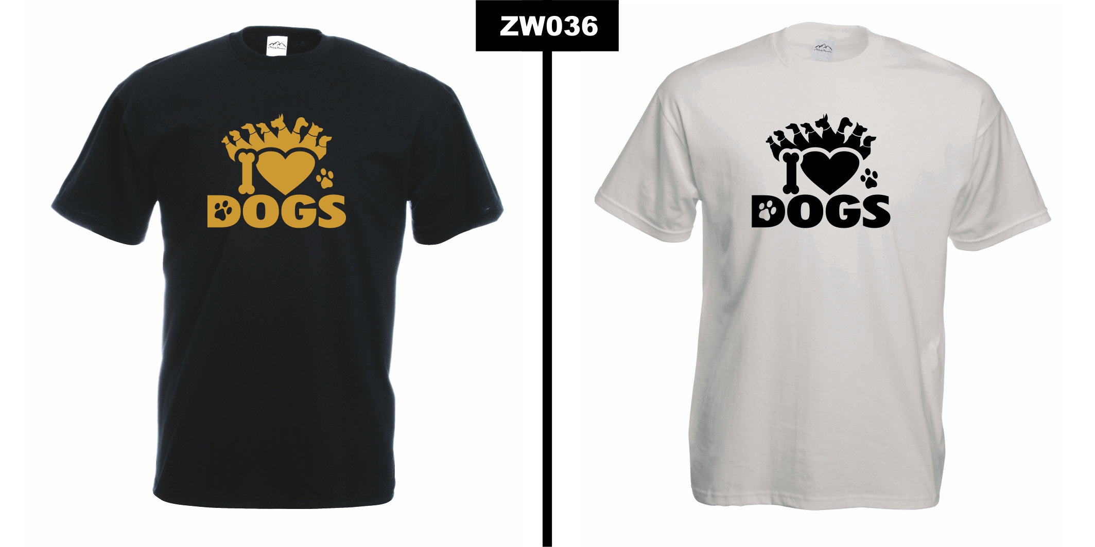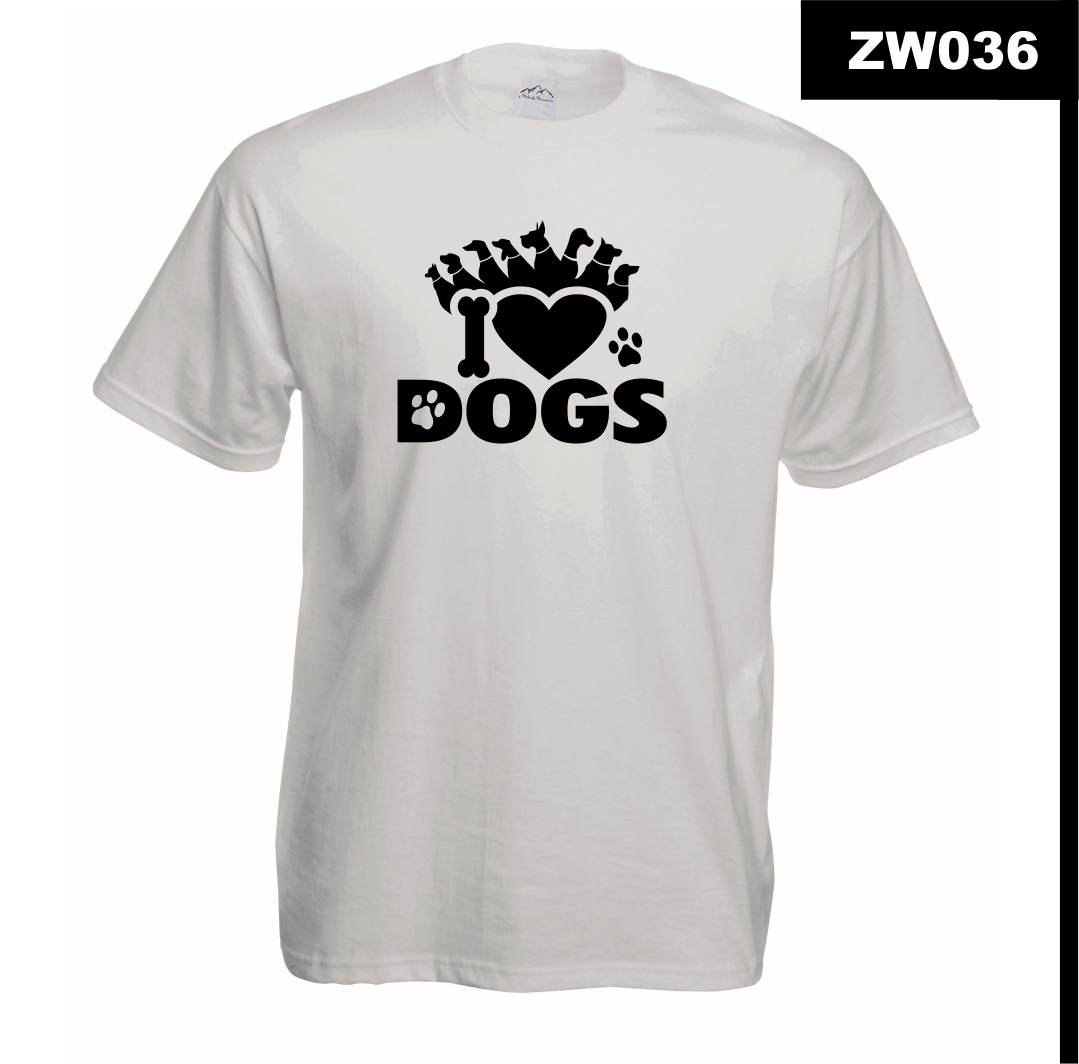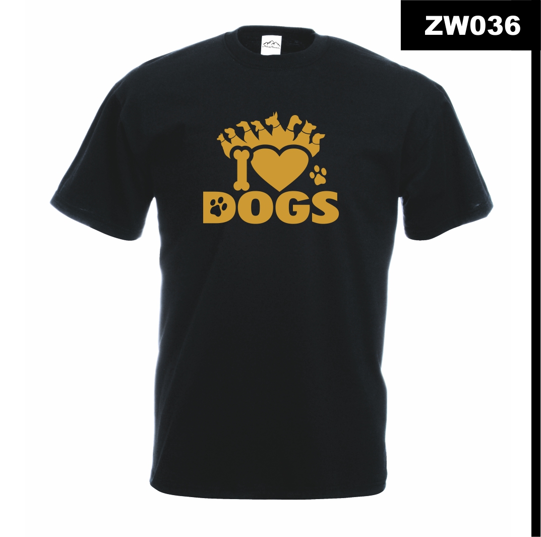 Prosta, ale wymowna grafika „I ♥ DOGS” została wzbogacona o elementy związane z psami, takie jak łapki i kości. To nie tylko estetyczny, ale i emocjonalny przekaz, który wyróżnia się na tle innych ubrań.