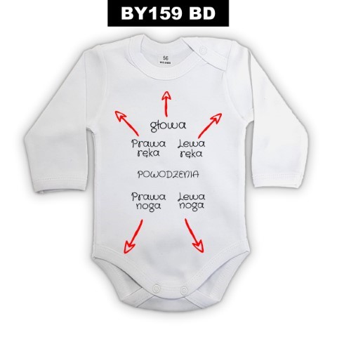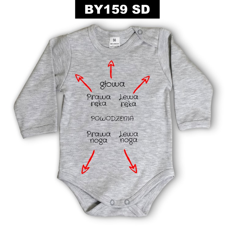 Body z nadrukiem „Instrukcja obsługi” to świetny prezent dla świeżo upieczonych rodziców, którzy dopiero uczą się, jak radzić sobie z pielęgnacją malucha. Humorystyczny nadruk z opisami „Głowa”, „Prawa ręka”, „Lewa ręka”, „Prawa noga”, „Lewa noga” oraz napisem „Powodzenia” i strzałkami to idealny sposób na dodanie luzu do codziennych obowiązków. To praktyczne, a jednocześnie zabawne body sprawdzą się jako prezent, który z pewnością wywoła uśmiech.