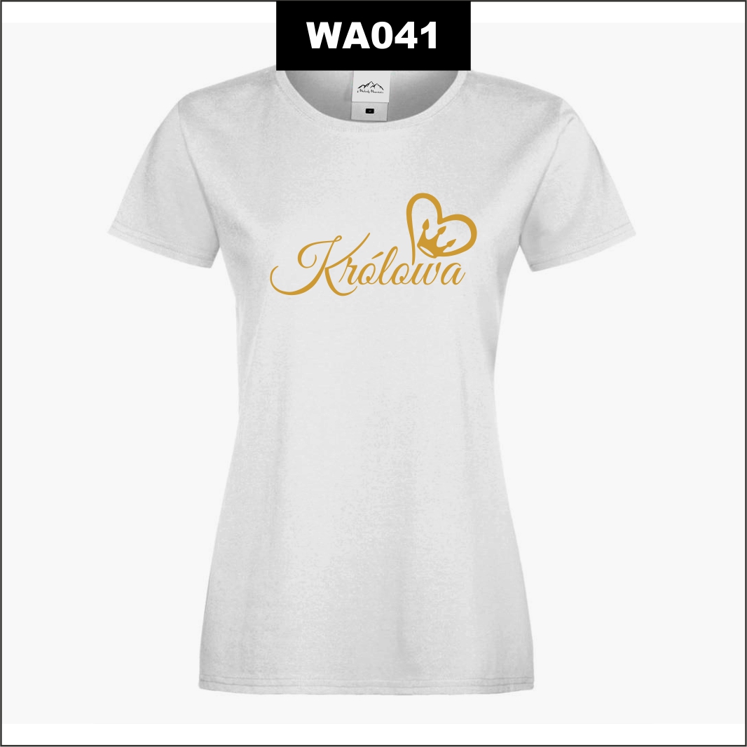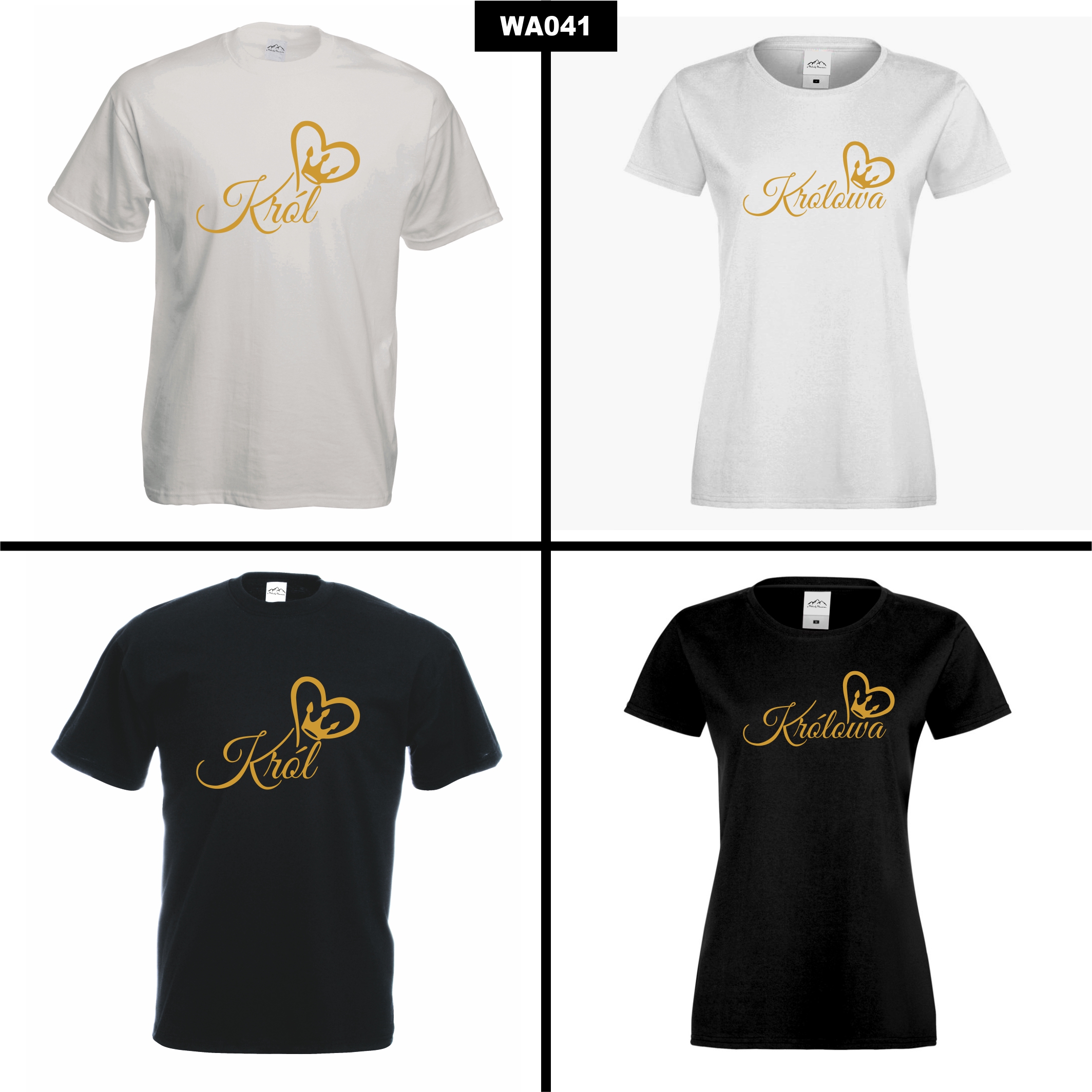 Złoty napis w eleganckiej czcionce połączony z delikatnym sercem i koroną to symbol wyjątkowej więzi. Kontrastowa kolorystyka sprawia, że wzór jest czytelny i efektowny zarówno na białej, jak i czarnej koszulce.