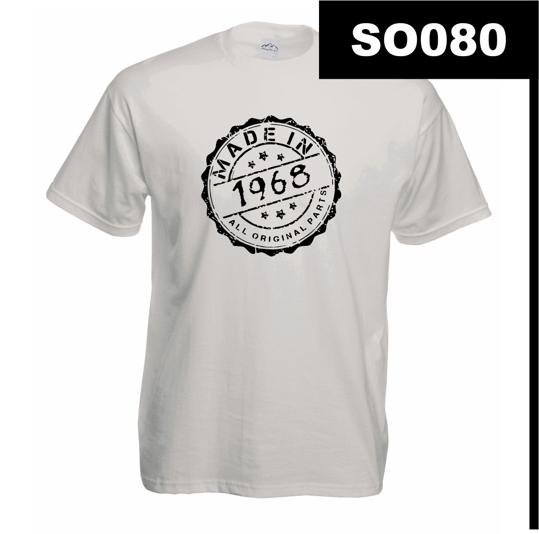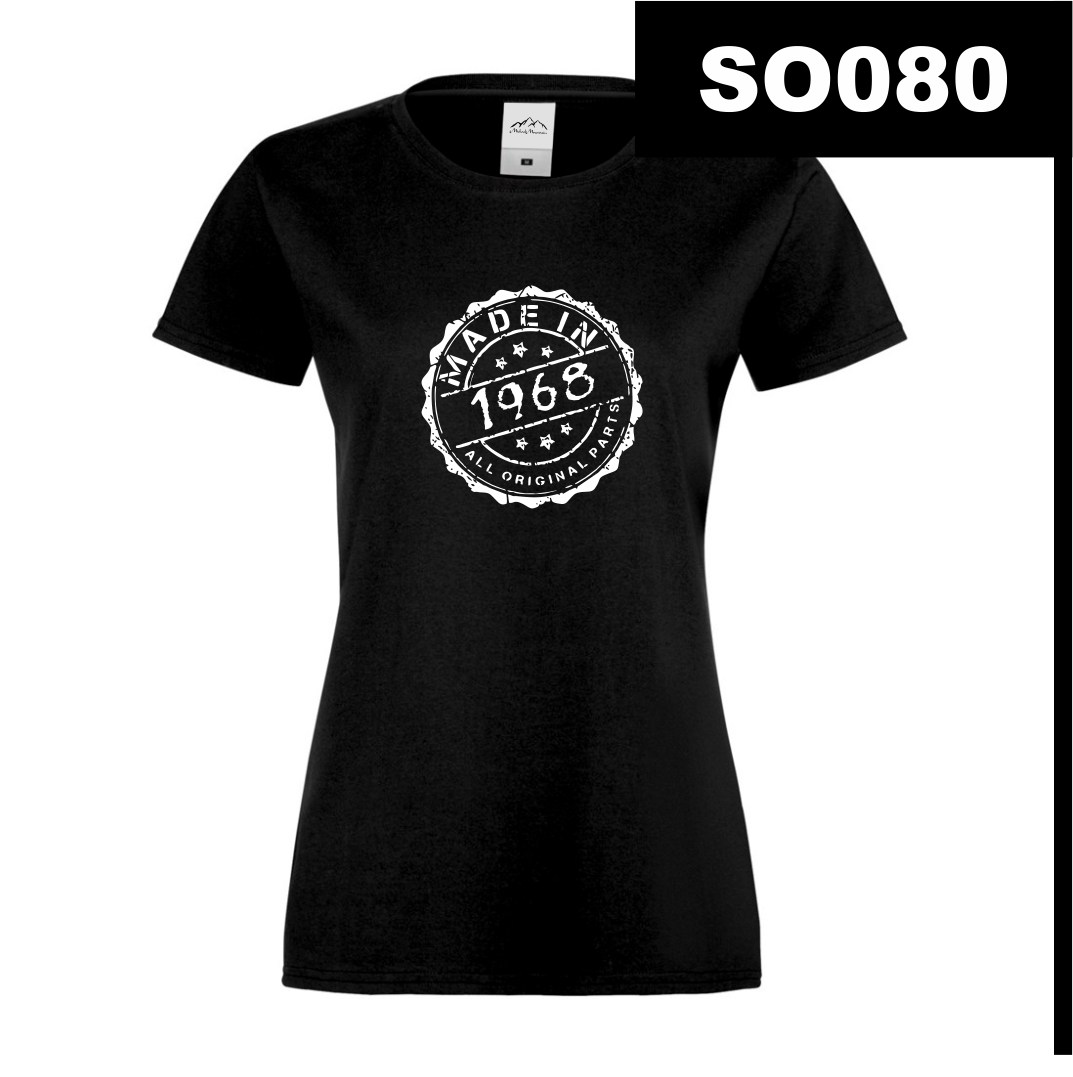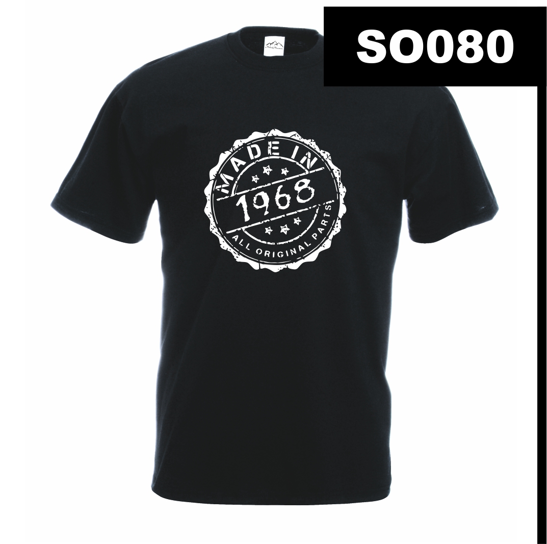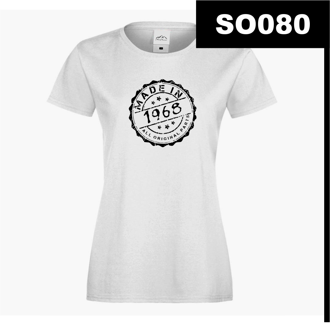 Design w formie pieczęci przypomina znak jakości, co idealnie wpisuje się w styl vintage. Wytarte krawędzie nadają nadrukowi retro charakter, podkreślając, że wszystkie „oryginalne części” są w doskonałej formie. Uniwersalna czerń na białym tle sprawia, że wzór jest czytelny i ponadczasowy.