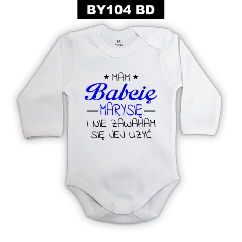 Te body z napisem „Mam Babcię [Imię] i nie zawaham się jej użyć” to wspaniały sposób na uhonorowanie szczególnej relacji między dzieckiem a babcią. Możliwość personalizacji imienia sprawia, że ubranko nabiera indywidualnego charakteru i staje się jeszcze bardziej wyjątkowe. Idealne na prezent dla wnuczka lub wnuczki, podkreślające więź z ukochaną babcią, która zawsze jest gotowa do pomocy.