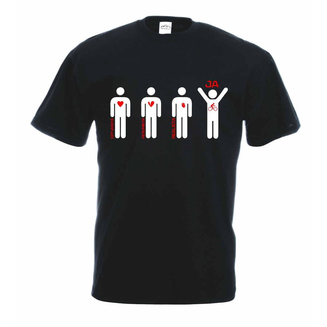 Koszulka „Optymista, Pesymista, Realista, JA” to wyjątkowy sposób na pokazanie swojego dystansu do życia i zamiłowania do rowerów. Grafika z prostymi symbolami i humorystycznym przesłaniem przedstawia różne postawy życiowe, wyróżniając pasjonata dwóch kółek – czyli Ciebie! To idealny wybór na co dzień lub na rowerowe wyprawy, dla każdego, kto chce wyrazić siebie z uśmiechem.
