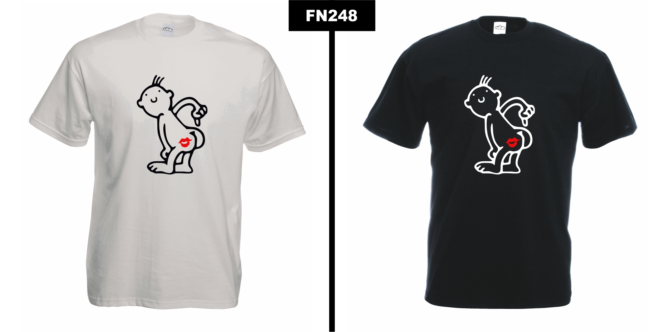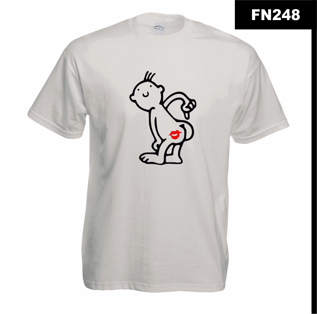 Kreskówkowa postać z odrobiną humoru i czerwonym akcentem w postaci „pocałunku” to projekt, który z pewnością przyciągnie wzrok. Prostota i dowcip nadruku czynią go uniwersalnym i pasującym do różnych okazji. To koszulka, która wywołuje uśmiech i pozwala wyróżnić się w tłumie.
