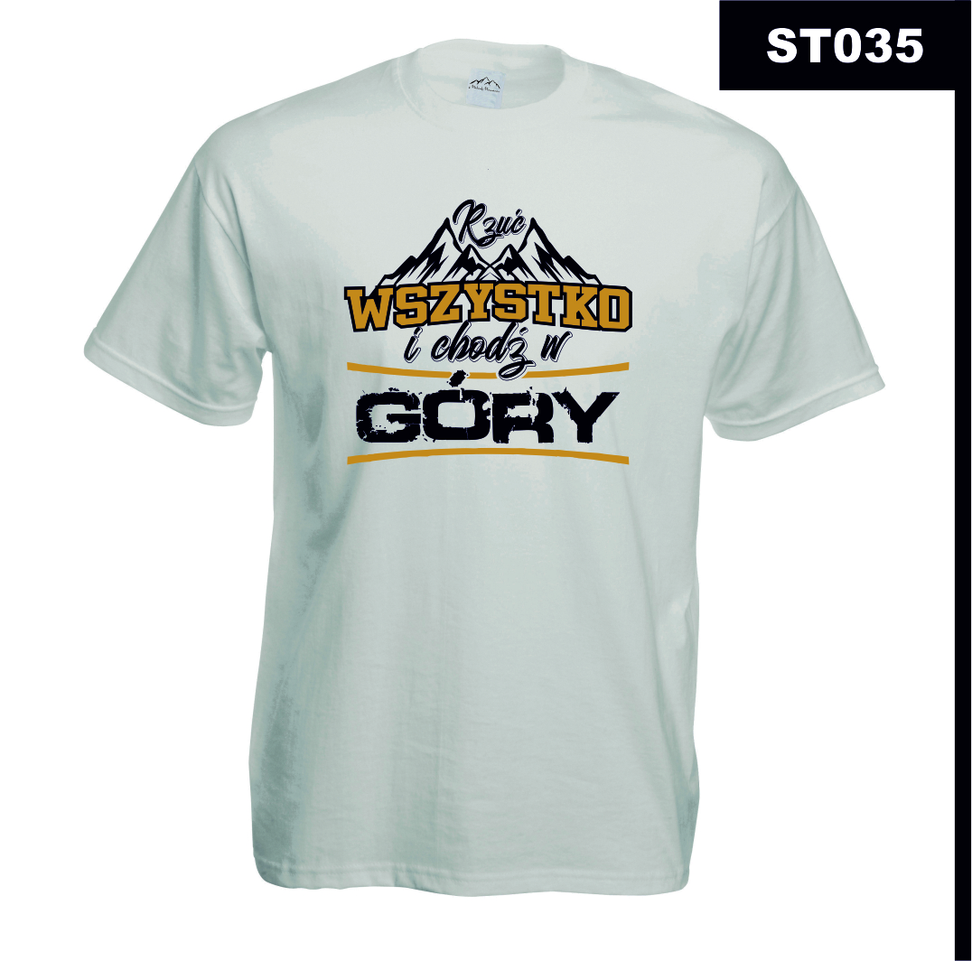 T-shirt „Rzuć Wszystko i Chodź w Góry” to nie tylko element garderoby, ale także manifest Twojej miłości do gór. Idealny dla osób, które marzą o ucieczce od miejskiego zgiełku i odnalezieniu harmonii w otoczeniu natury. Ten T-shirt to doskonały dodatek do Twojej kolekcji, pozwalający wyróżnić się z tłumu i pokazać swoją pasję.