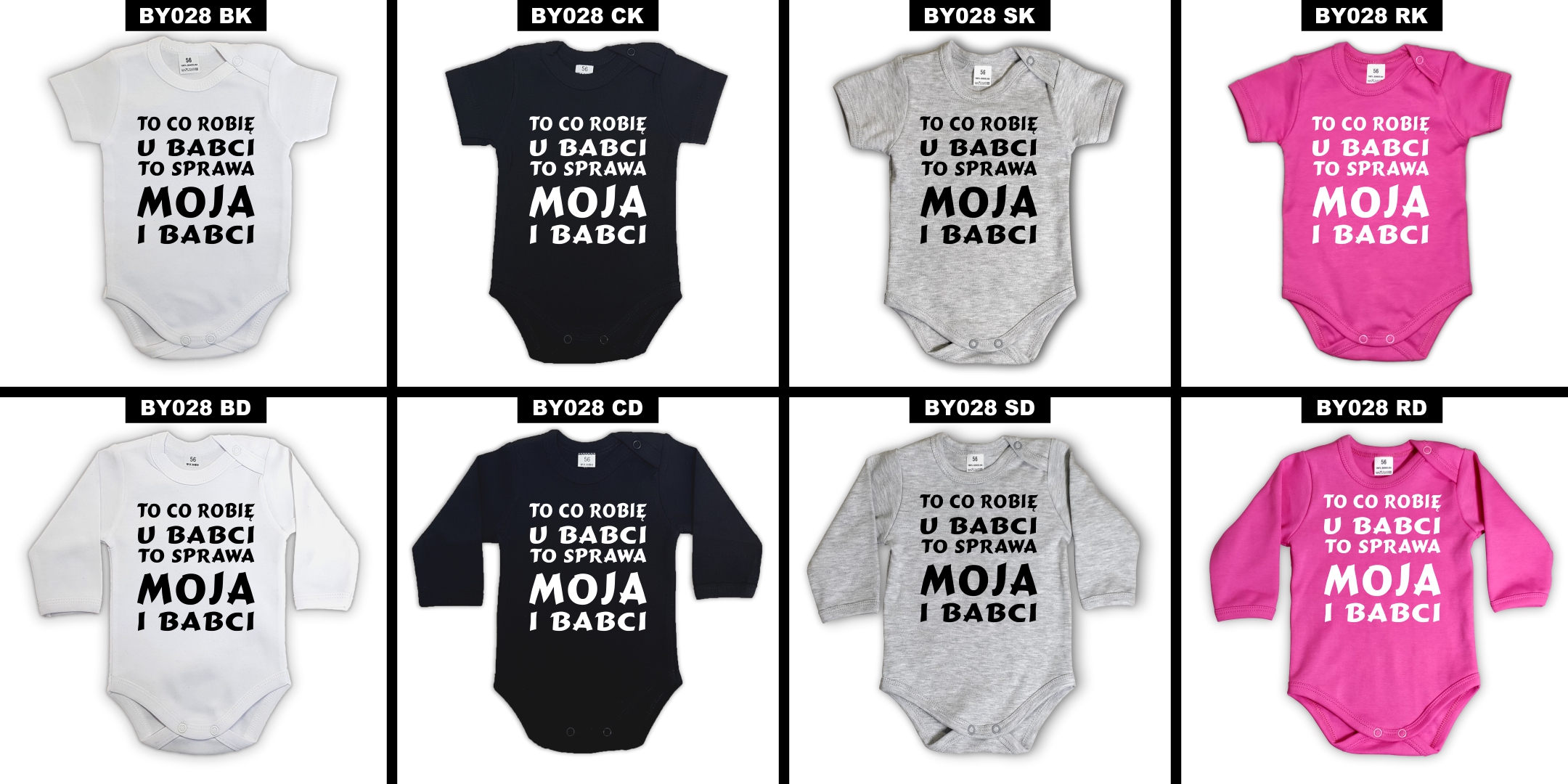 Body z nadrukiem „To co robię u babci to sprawa moja i babci” to doskonały wybór dla maluszków, które mają wyjątkową więź ze swoją babcią. Ten zabawny i uroczy napis z pewnością wywoła uśmiech na twarzach rodziny i bliskich. Body idealnie nadają się na prezent dla małych wnuków i wnuczek, dodając ciepła i humoru każdej okazji.