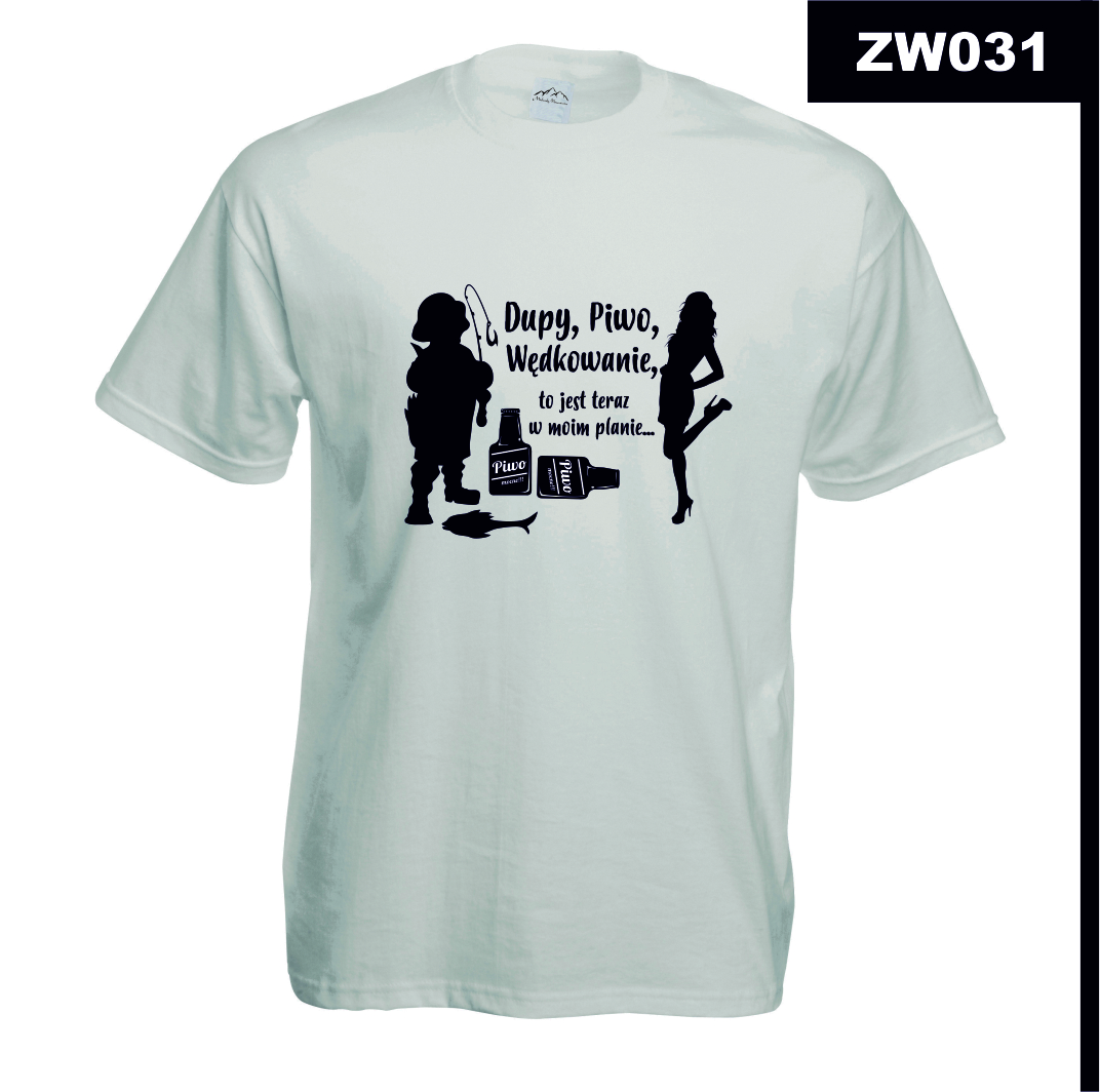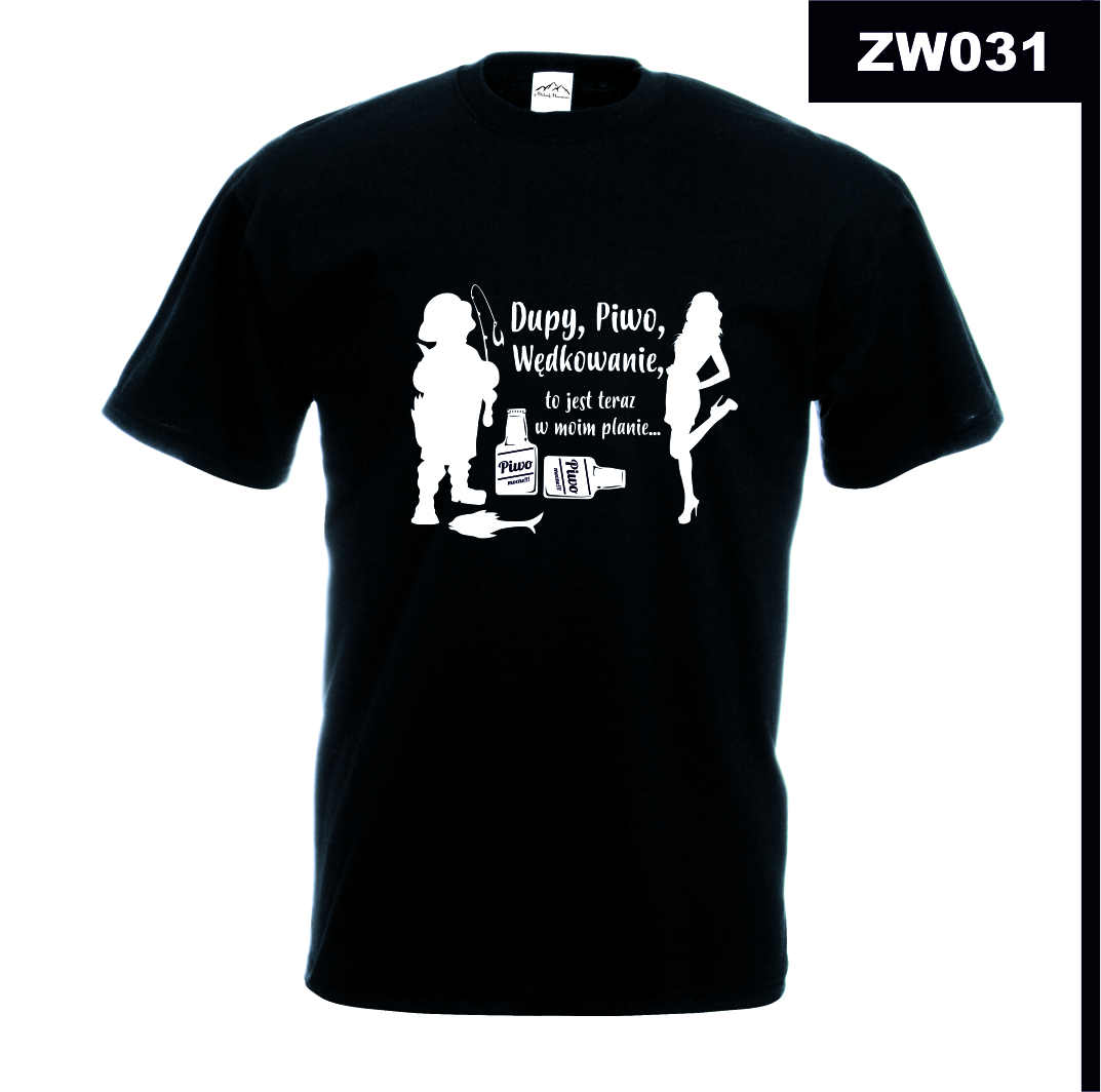 Nadruk łączy w sobie humorystyczny przekaz z motywem wędkarstwa. Hasło „Dupy, Piwo, Wędkowanie, to jest teraz w moim planie…” idealnie oddaje luz i relaks, jakie przynosi weekend spędzony nad wodą. Sylwetki, piwo i wędka tworzą kompozycję, która przyciąga wzrok i wywołuje uśmiech.